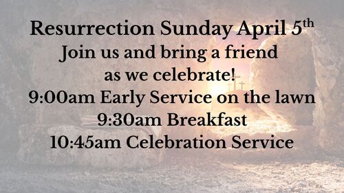 There’s no better time to celebrate hope, renewal, and the power of new beginnings. Join us on Resurrection Sunday as we honor the risen Savior. Come celebrate the victory, the joy, and the promise of Resurrection Sunday! Early service on the lawn begins at 9am. We'll have breakfast at 9:30am. Our celebration service begins at 10:45am. Bring your family and friends!